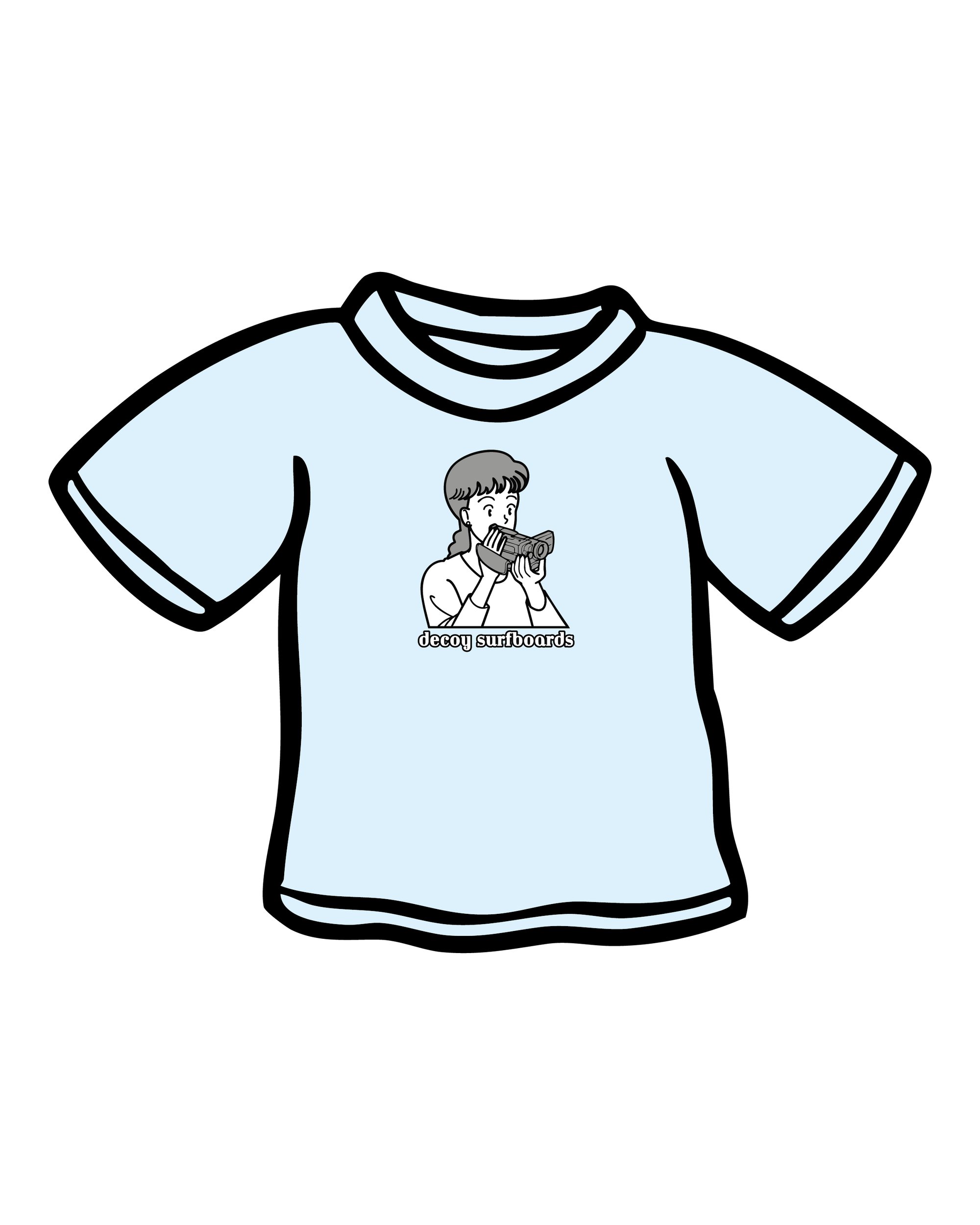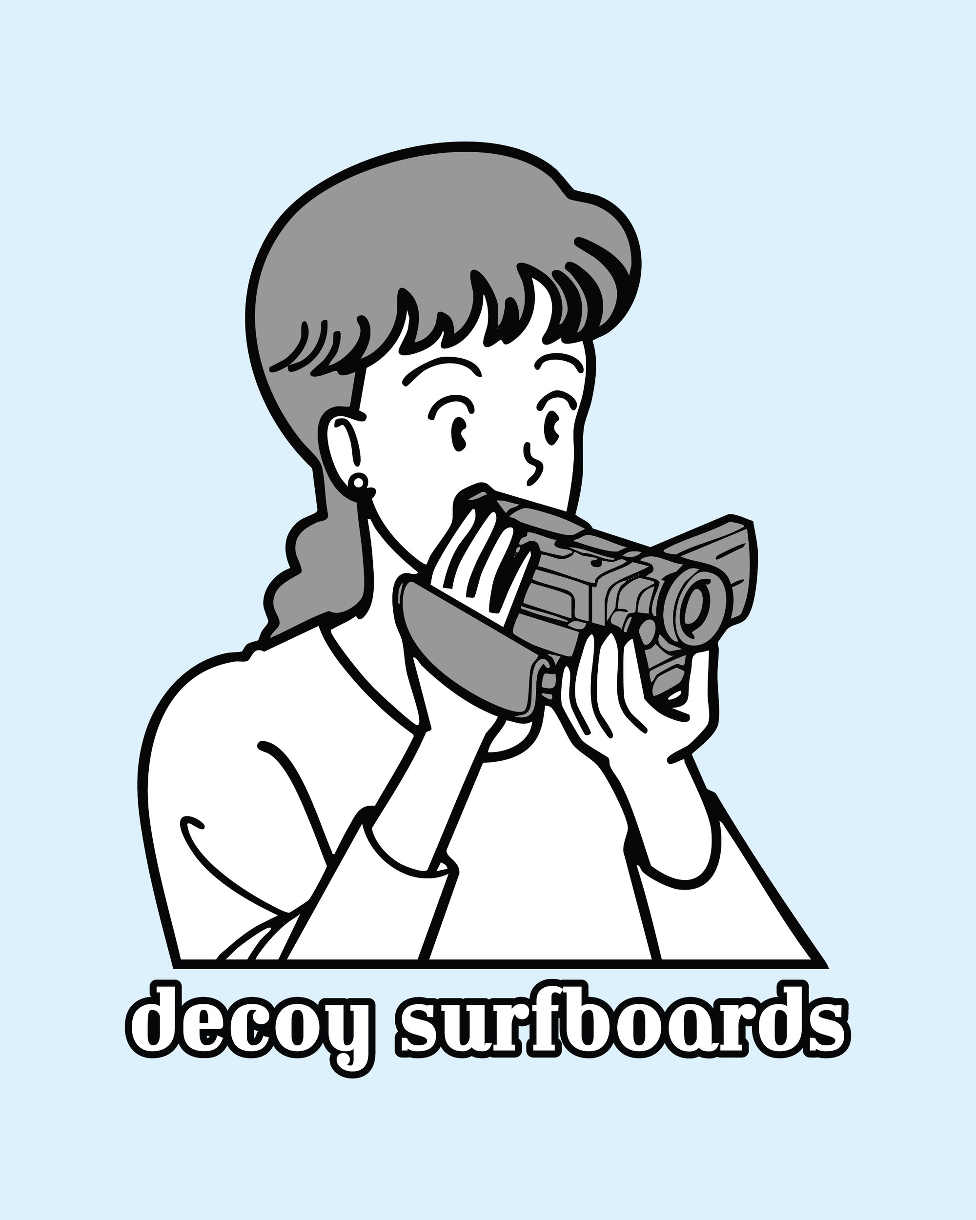 Anyhoo, I also found the manual for that same camera, and there was this nice drawing of a lady holding the camera. That's this graphic. Now, in the manual, it doesn't have the words "decoy surfboards" in it. I added that in, myself.