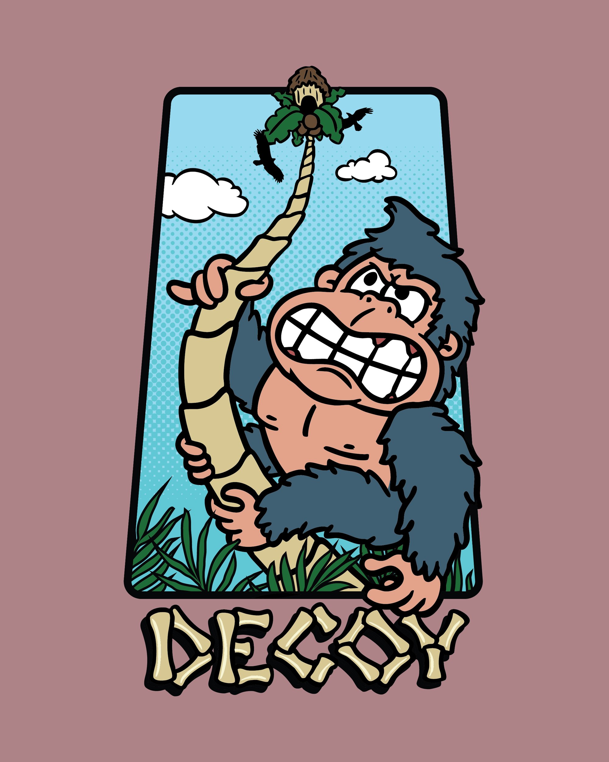 There was this game I had in my childhood, also called "Monkey Madness." I struggle to call it a "board game," but I don't know what else to call it. It was a game like "Mouse Trap," where it's like a 3D game you build on a table top. Anyway, it was a motorized gorilla that climbs a plastic tree, and your opponents goal was to place little plastic monkeys along the tree in hopes of preventing the gorilla from climbing all the way up. Sometimes the gorilla just blasted through them, other times it would get stuck on a monkey and fall to the ground. I don't know why this game stuck in my memory, but it did. So, I ripped off the game’s box art, and did my own version of it.
